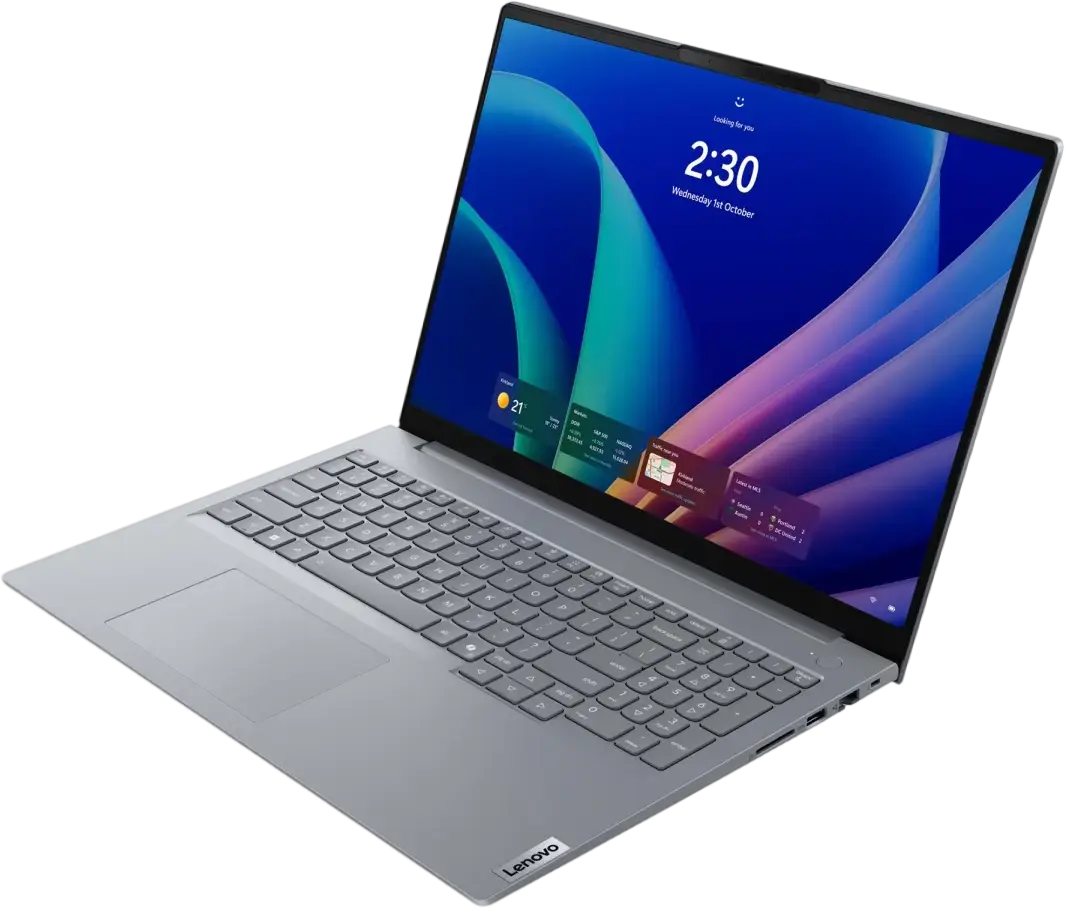 Lenovo ThinkBook 16 G9 відповідає військовому стандарту MIL-STD-810G, що забезпечує не лише елегантний зовнішній вигляд, але й довговічність. Функції безпеки, такі як камера із вбудованою затворною камерою та зчитувач відбитків пальців, гарантують повний захист ваших даних. Це ідеальне рішення для тих, хто цінує безпеку на роботі.