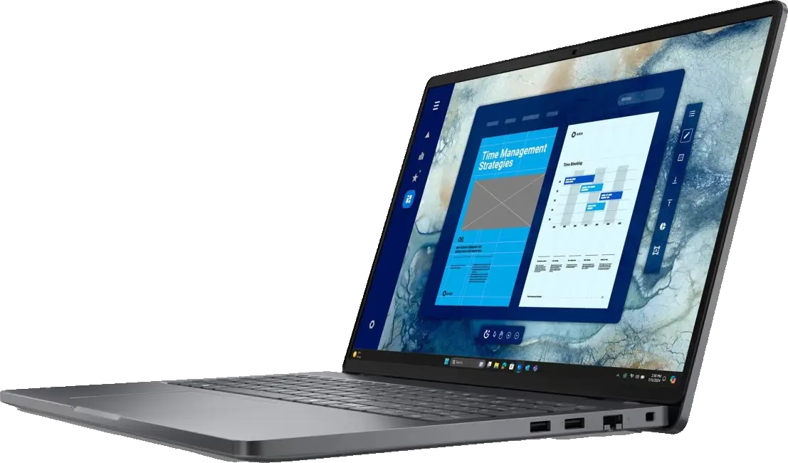 Dell Pro 16 - це ноутбук, який добре працює в офісі та в дорозі. Він пропонує потужні компоненти та розширені функції для підтримки вашої щоденної роботи. Ви маєте доступ до декількох портів, високошвидкісного Інтернету та сучасних функцій безпеки. Ноутбук дозволяє ефективно працювати незалежно від того, де ви знаходитесь і в який час доби. Це гарне рішення для всіх, кому потрібне надійне обладнання для вирішення бізнес-завдань.